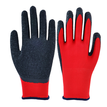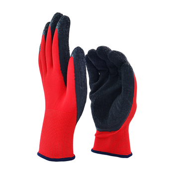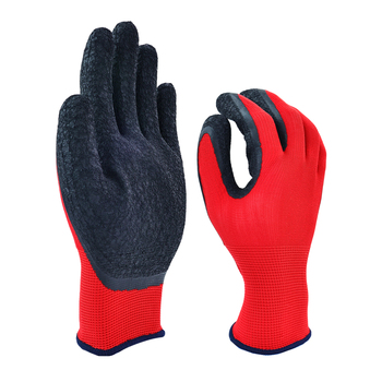 Guantes baratos de poliéster de látex recubiertos de arrugas personalizar guantes de seguridad para el trabajo en el jardín